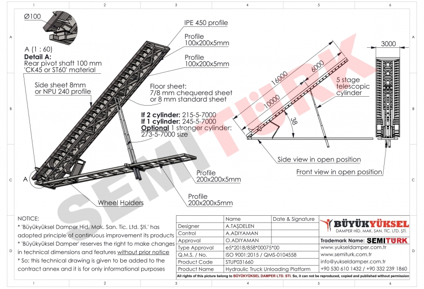 Kamyon / tır boşaltma platformu aşağıdaki seçenekler ile üretilmektedir;